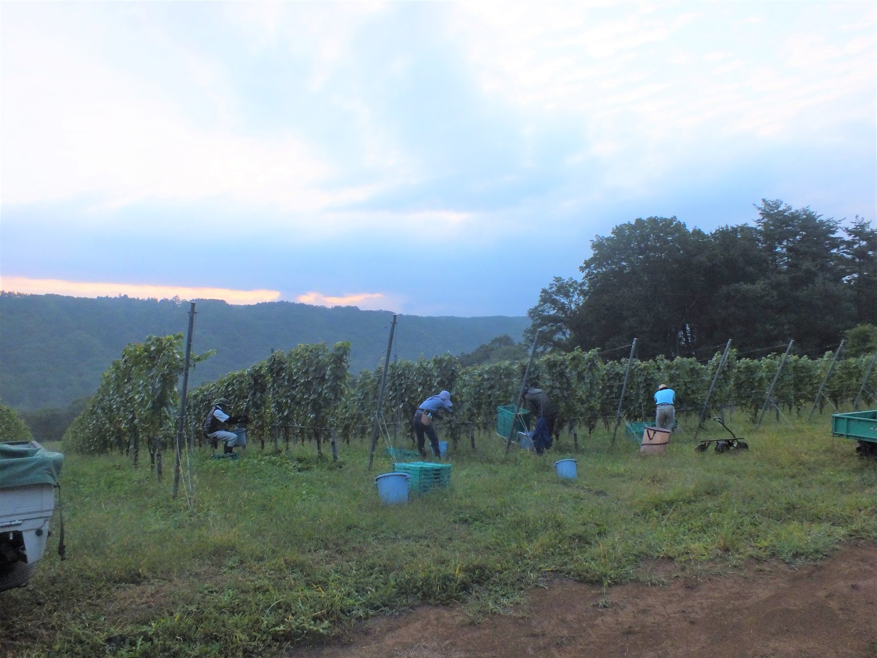 白州Vineyardでソーヴィニヨン・ブランの収穫を行いました。