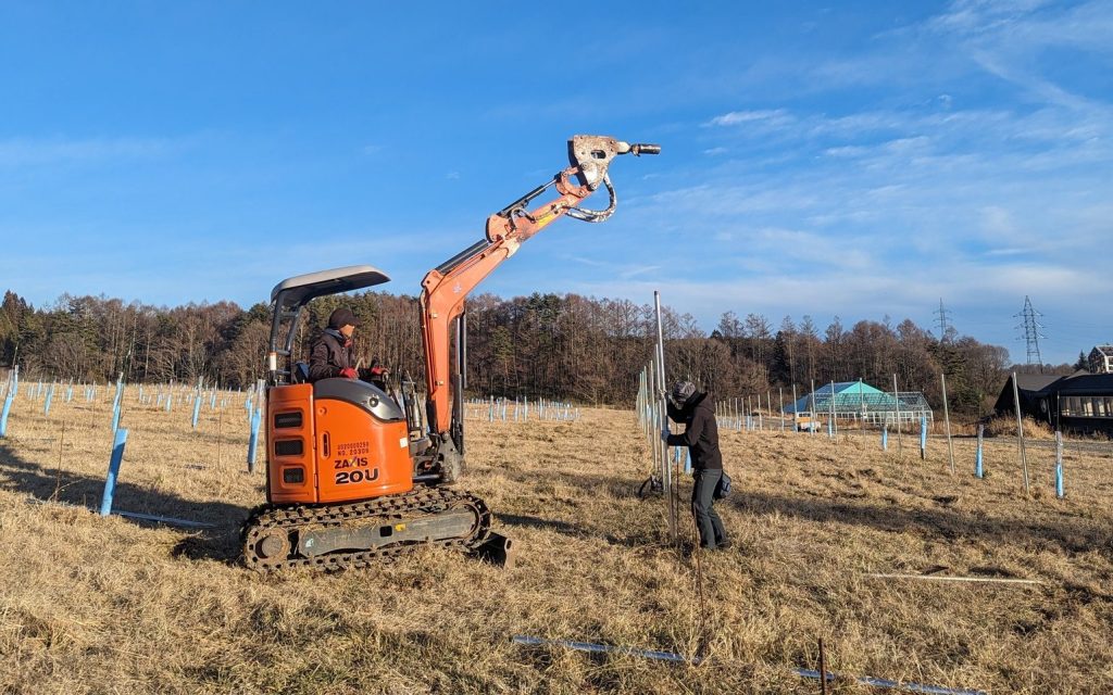 甲州ブドウの圃場づくりを行っています。(北杜市)