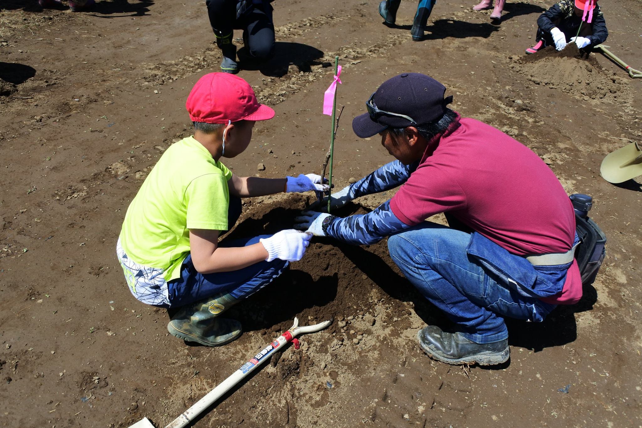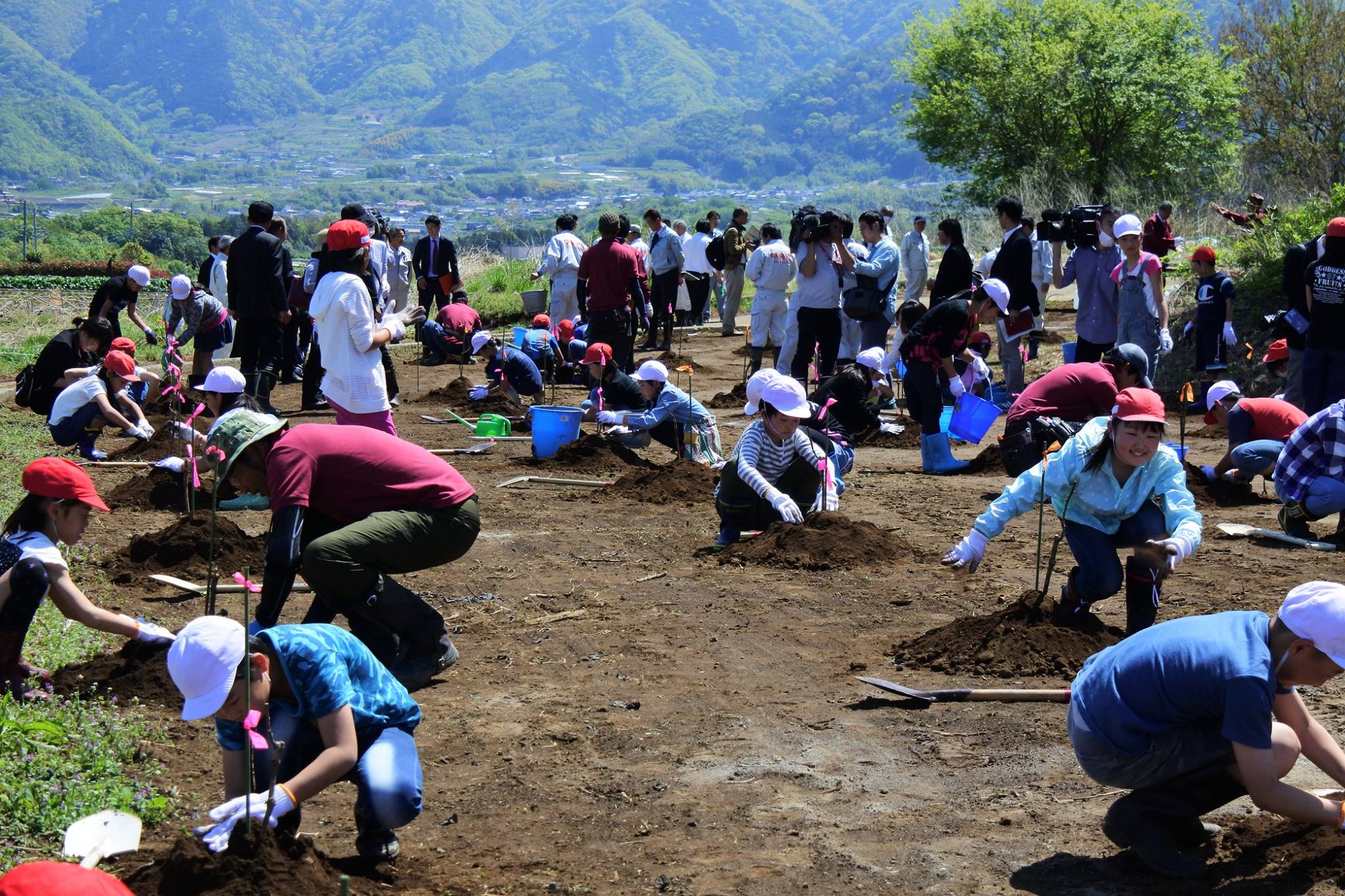 苗木の記念植樹会が行われました(中央市) 2018.04.22 4月20日にジョイントベンチャーの新圃場にて苗木の記念植樹会が行われました。 式典には豊富小学校の5年生も参加、成人になる10年後にはこのブドウから造られたおいしいワインで乾杯できるといいですね! 甲州の植付けを行っています(中央市) トップページ お知らせ 苗木の記念植樹会が行われました(中央市)