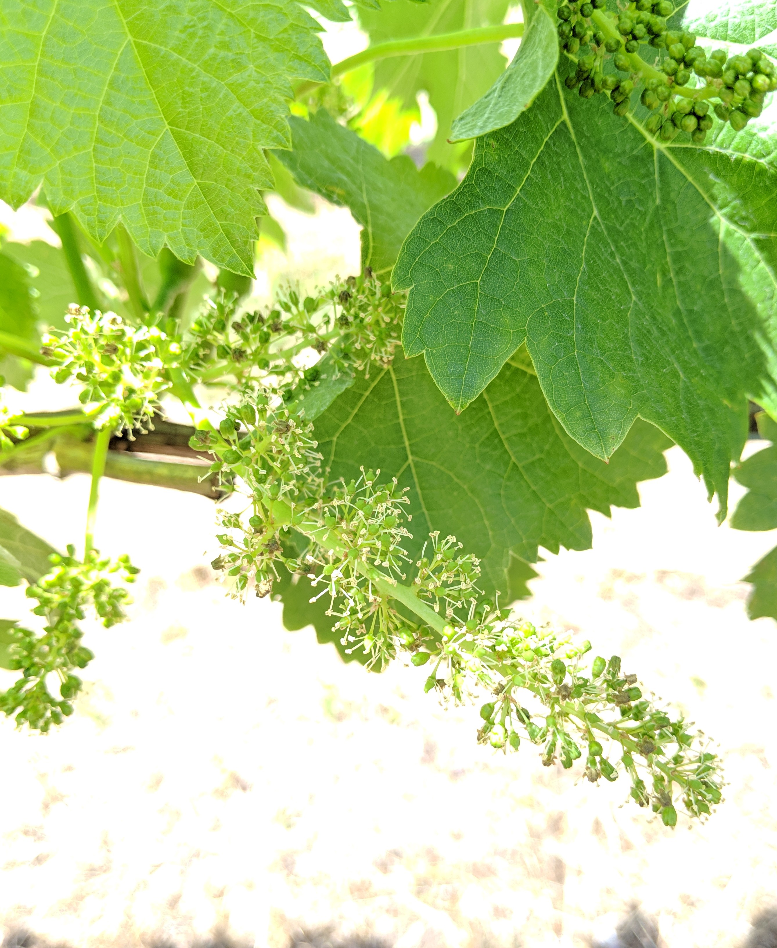 畑ではグングン伸びる新梢さばきや不定芽とり、下草刈などをしています。梅雨入り前に結実してほしいです。