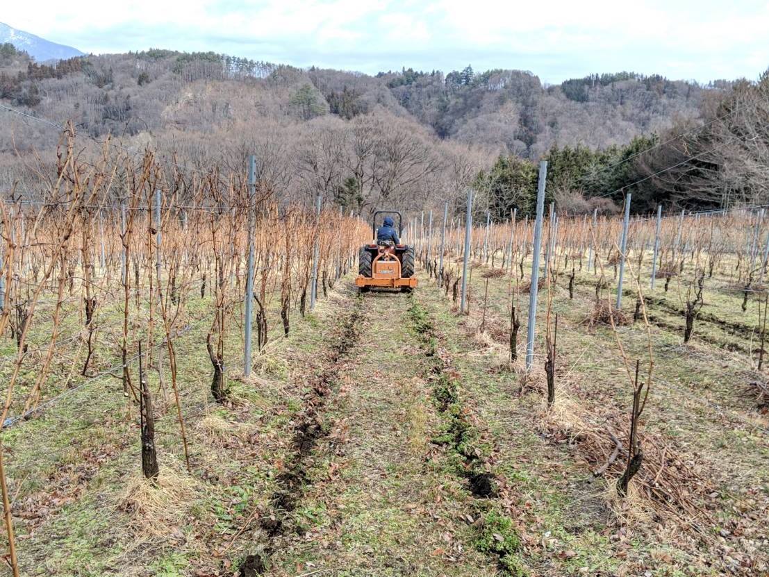 白州Vineyardの土に切れ込みを入れました。(北杜市)