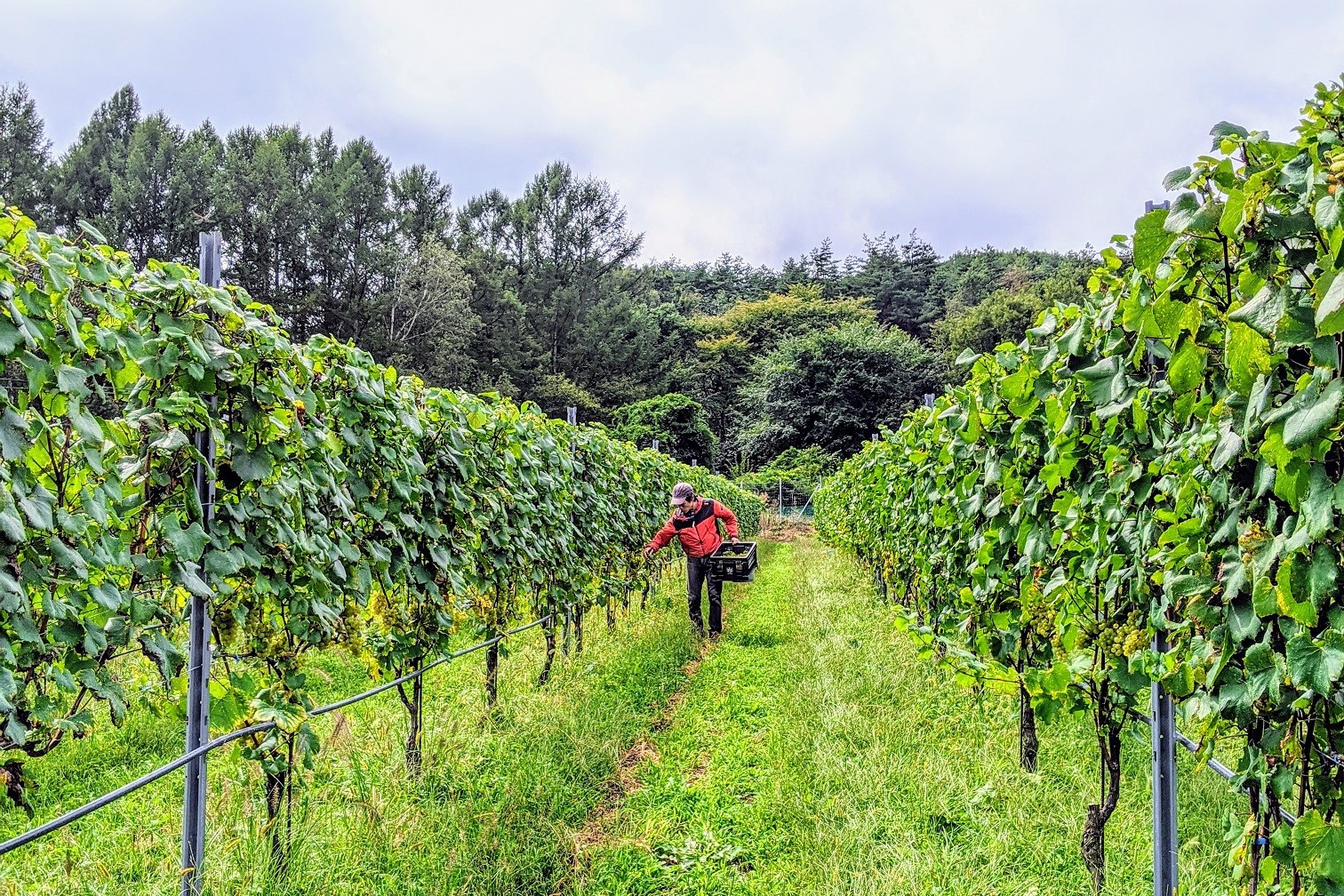 白州vineyardで初のcityワイン用のシャルドネを収穫しました。
