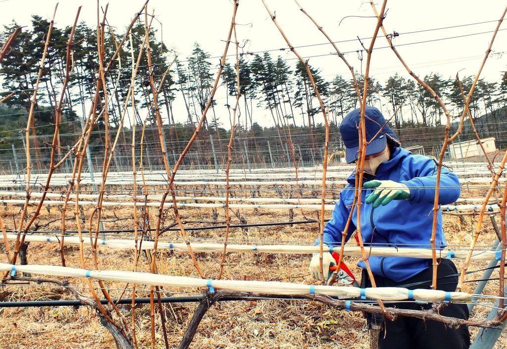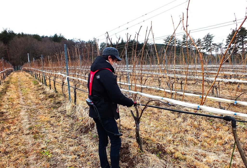 シャルドネの剪定を行いました。(北杜市) 2023.01.24 白州圃場のシャルドネの剪定を行っています。昨年から電動剪定ハサミを追加で2台導入しました。少ない人数でも仕事を効率よく回せるように工夫しながら作業を進めています。 「北杜市産のワインの魅力と可能性」講演会のトークセッションに参加いたします。(北杜市) 堆肥撒きを行いました。(北杜市) トップページ お知らせ シャルドネの剪定を行いました。(北杜市)